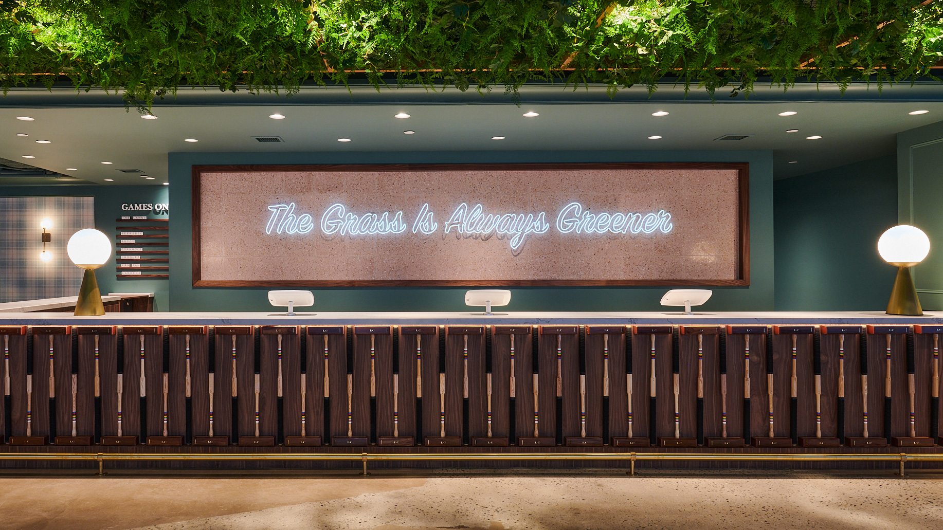 Designed to deliver the ideal atmosphere for hanging out with friends, each rentable lawn at Lawn Club will come with a full complement of popular lawn games including but not limited to bocce, cornhole, croquet, ladders, kan jam, beersbee, putting pool and shuffleboard, along with big-screen TVs for sports enjoyment, courtside drink service, and dedicated “Lawncierges” to help with all gaming needs.