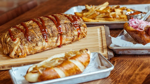 The space is two floors with two sets of 24 taps on each floor with locally crafted beer, a slew of sausage sandwiches, bacon items, and even a weekend Brunch.