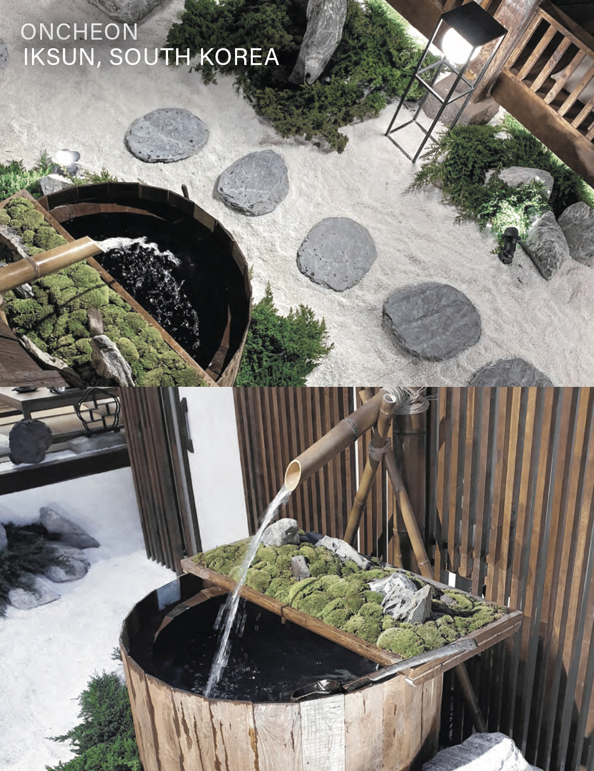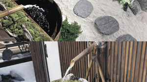 Imagine a picturesque garden adorned with a steaming hot spring, a moss-covered bath that invites relaxation, and the gentle sound of flowing waters harmonizing with the natural surroundings. The elegant white pebble floor evokes the purity of freshly fallen snow, providing a serene backdrop for your experience.