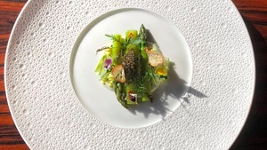 Michelin-starred, French-inspired cuisine featuring three kind of prix-fixe menus, with choices : 3 course, 4 course and a 7 course in addition to a bar menu of more casual dishes.