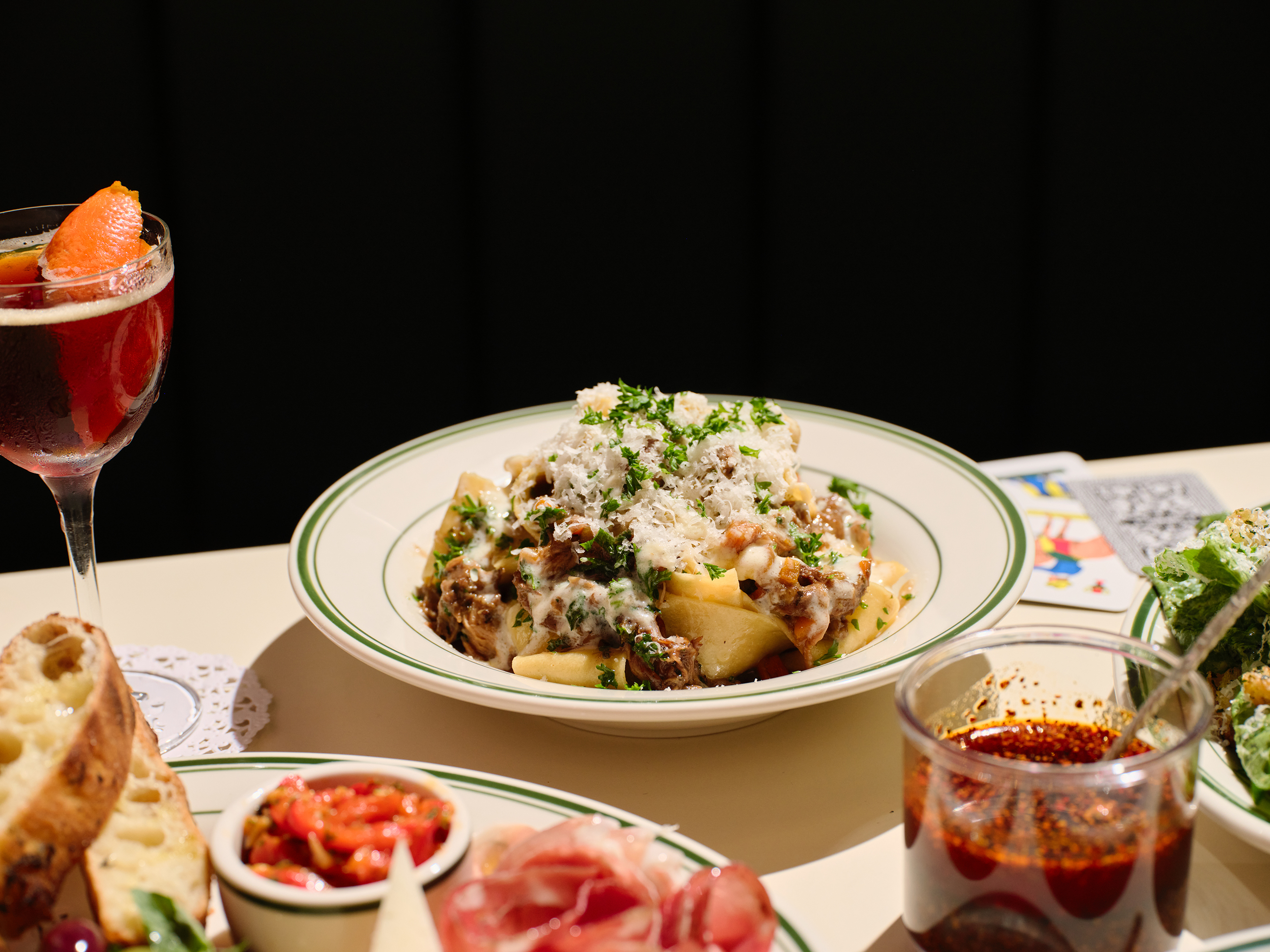 Pasta Night is a cozy and casual neighborhood trattoria, serving an assortment of handmade pasta dishes, mains, and of course, classic Italian sweets and spoon desserts, provided by Ciao, Gloria herself.