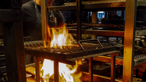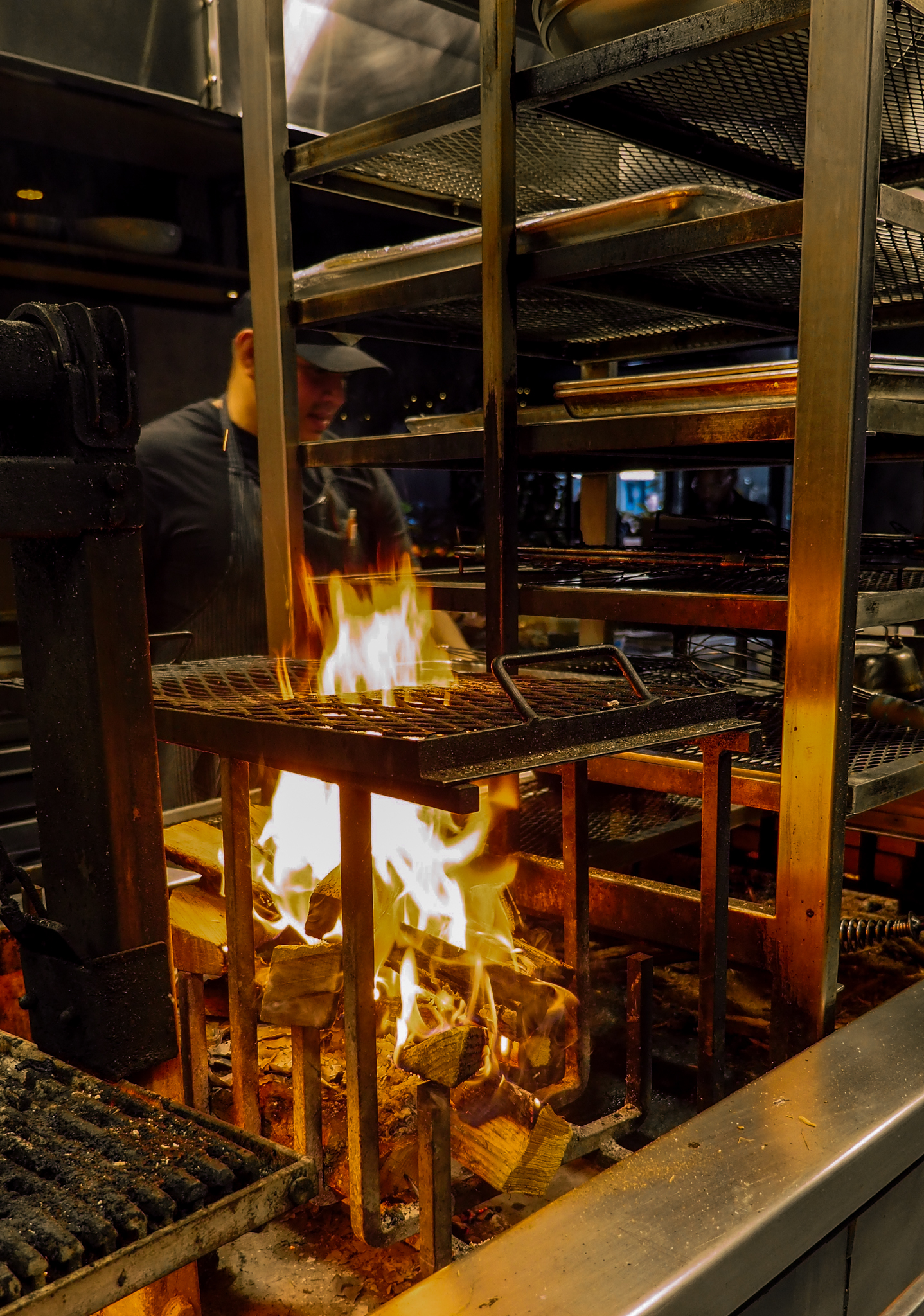 Kindling features a custom-build 14' long wood-burning grill and rotisserie that serves as the hearth and the heart of the restaurant's main floor. The kitchen is led by Jonathon Sawyer, who won the Beard Award for Best Chef: Great Lakes in 2015 for his work at The Greenhouse Tavern, Noodlecat, and Trentina in Cleveland. Most recently, Chef Sawyer oversaw the Four Season's Adorn Restaurant & Bar. Many of his restaurants centered around live-fire cooking.