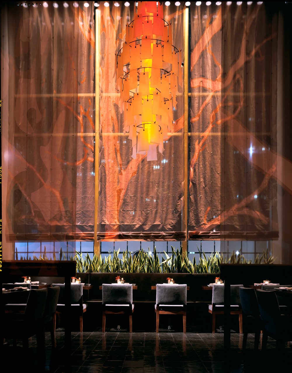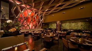 Upon arrival, guests are ushered into the restaurant through ornate steel double doors that open into a multi-level 177 person seating. Distinct dining areas offer guests the opportunity to tailor their own dining experience. The lush garden landscape within the restaurant alludes to both its proximity to Bryant Park, as well as the garden setting of its Los Angeles sister location.