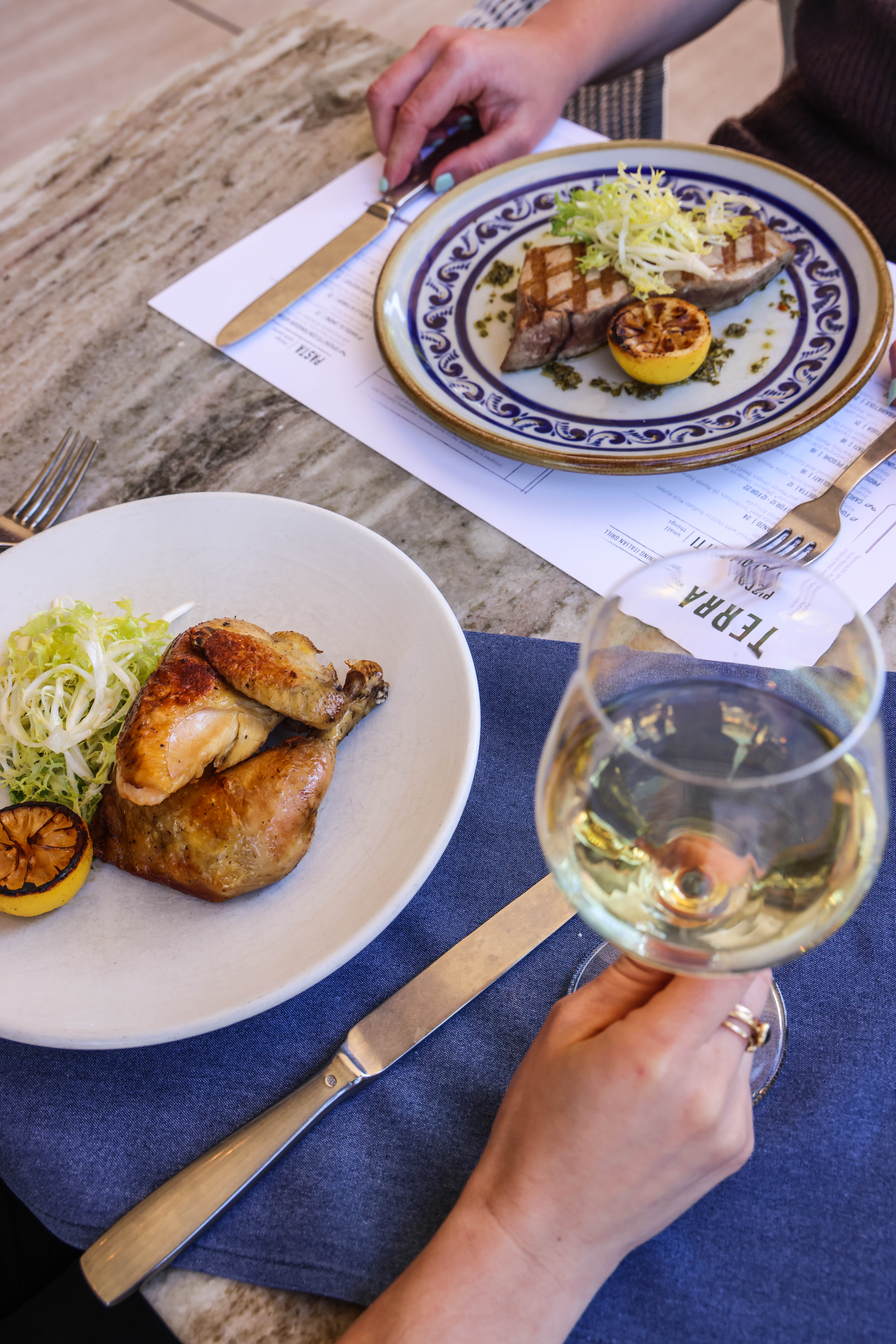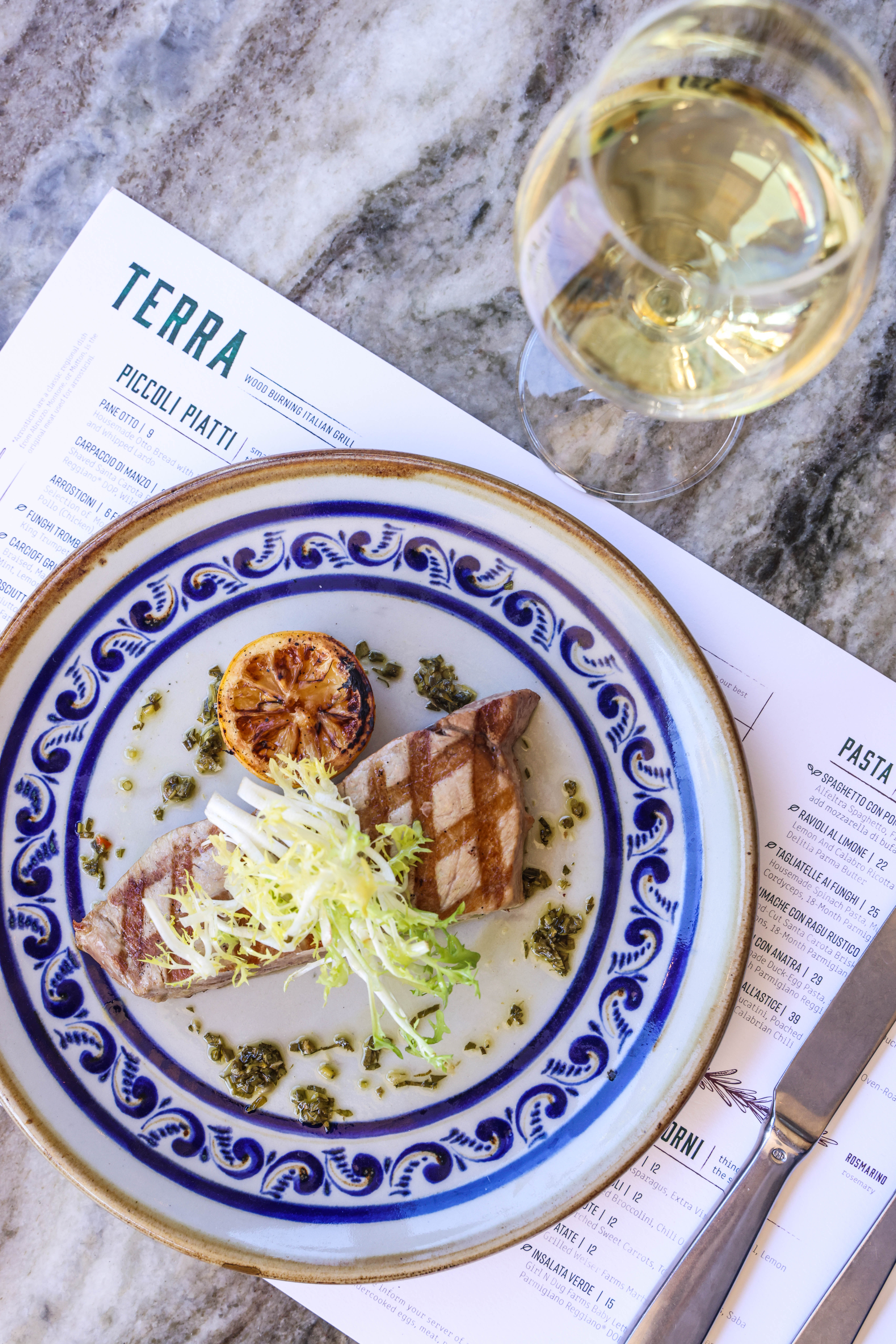 Named for "earth" in Italian, Terra's menu is centered around the grill, where our chef cooks seasonal raw ingredients over burning flames, allowing the simple flavors to shine. The resulting earthy dishes pair perfectly with the botanical cocktails, regional Italian wines, and more.