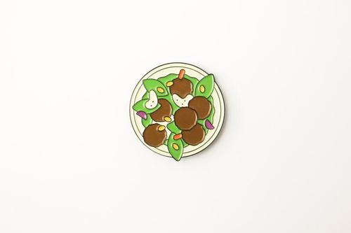 Our new enamel Goldie Salad Pin will add a little flare to your jacket, bag or Goldie tote!